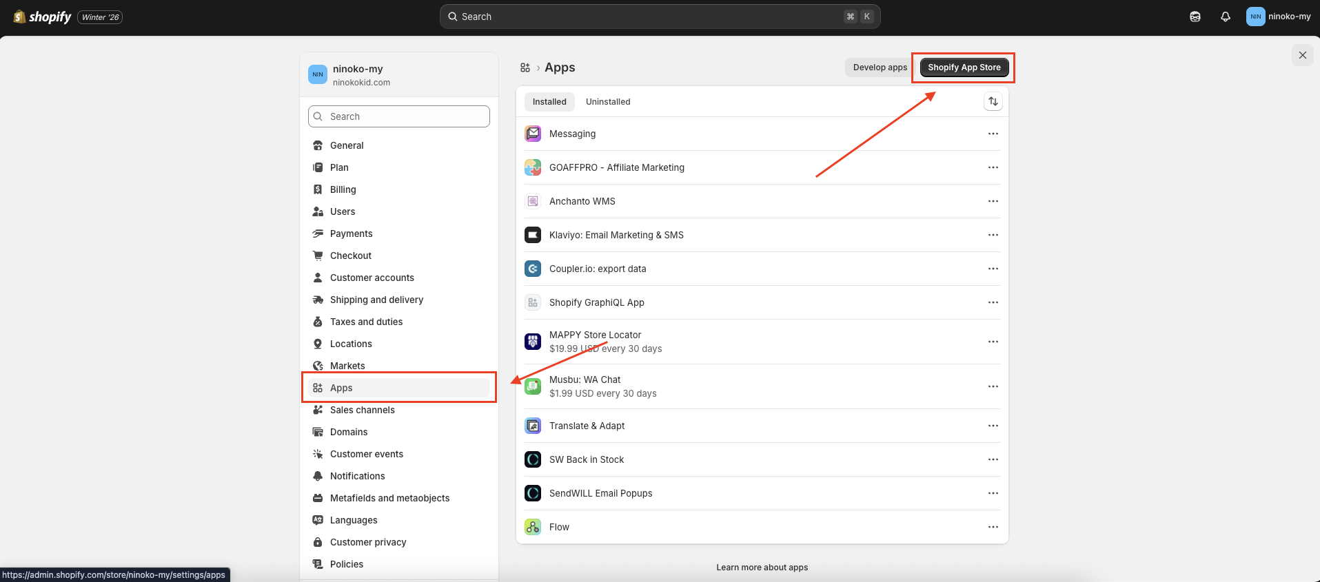 Store Name : Brands + Shopify. (Exp : Ninoko Shopify)