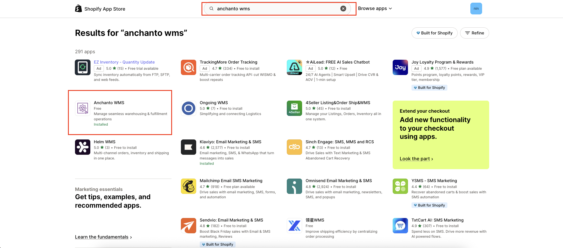 Search [Anchanto WMS], then select Anchanto WMS.