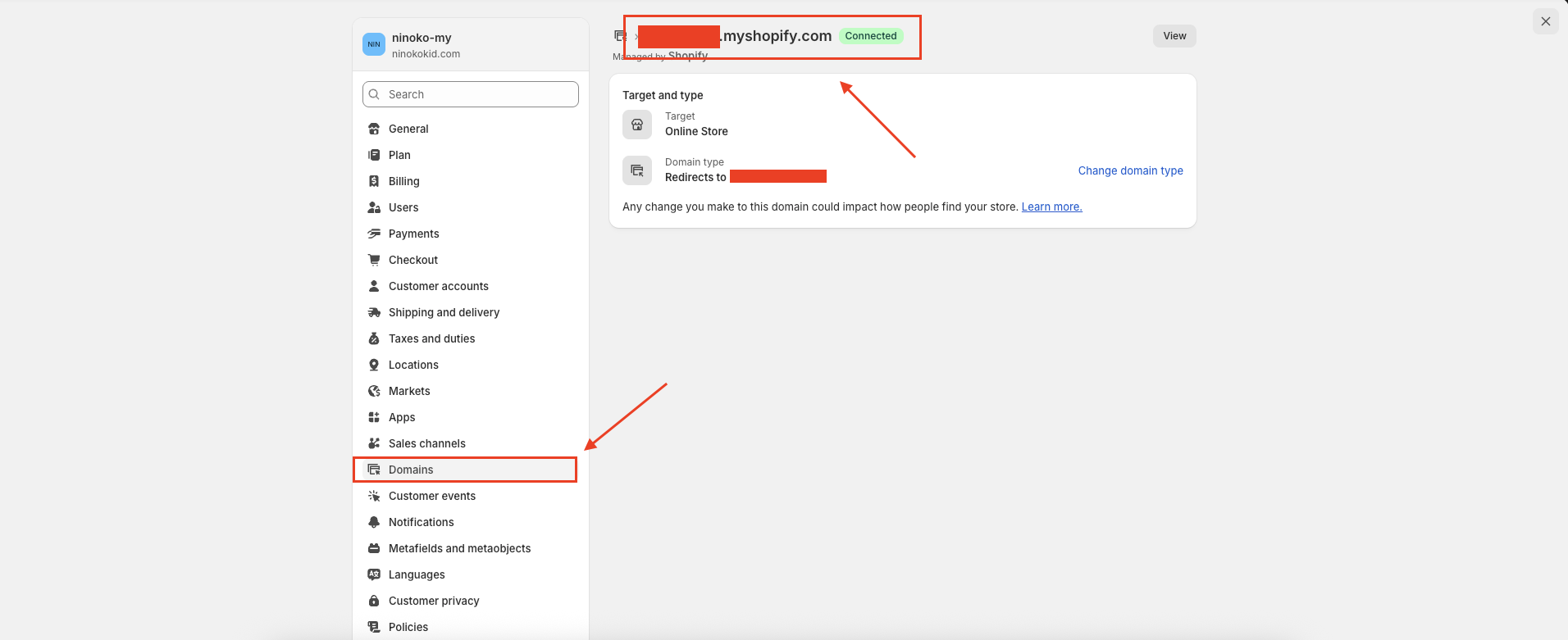 Back to Shopify, click [Domain].