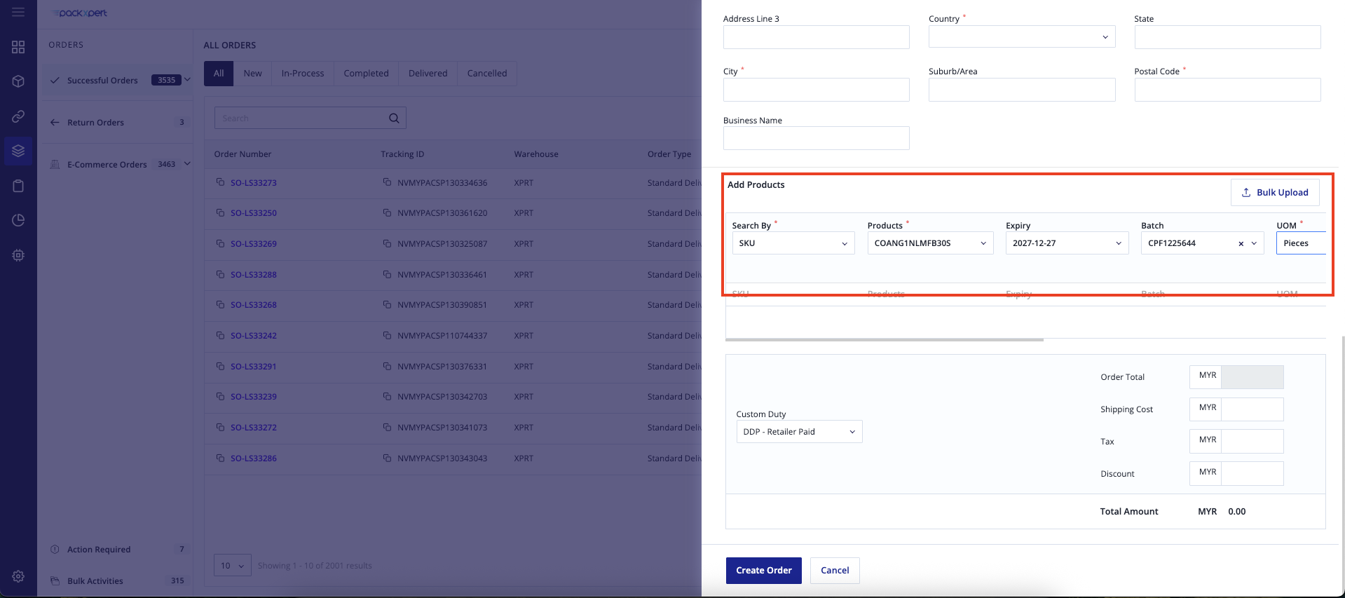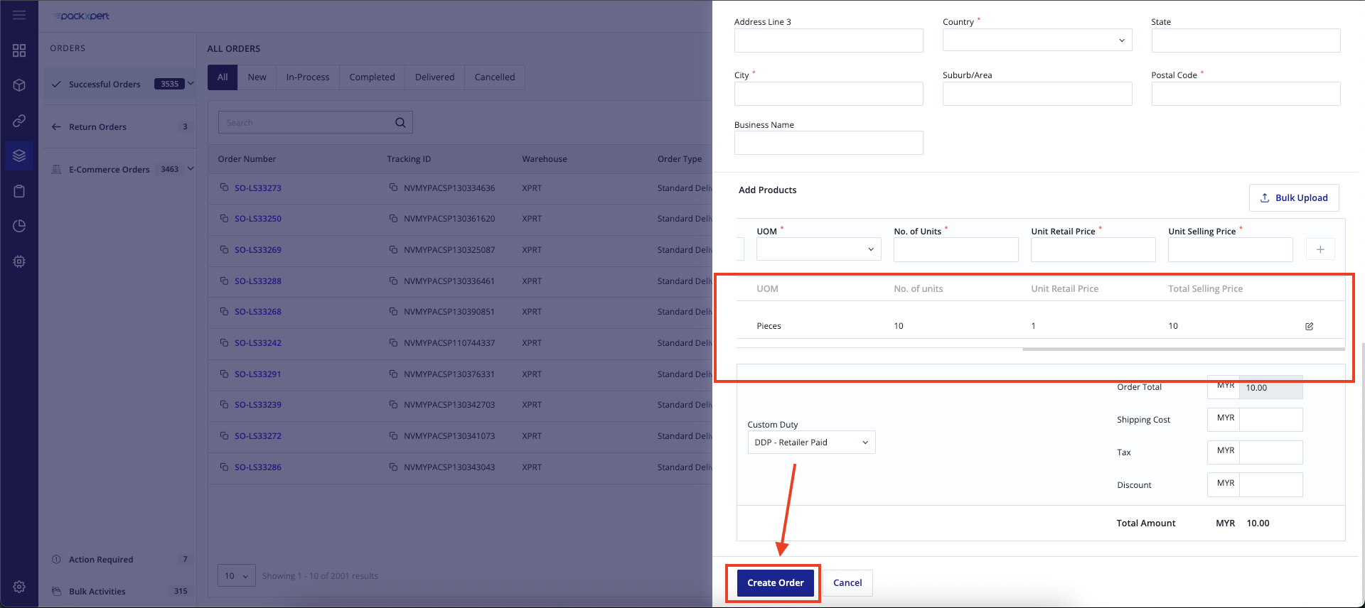 Please make sure the product has been successfully added, then click “Create Order”.