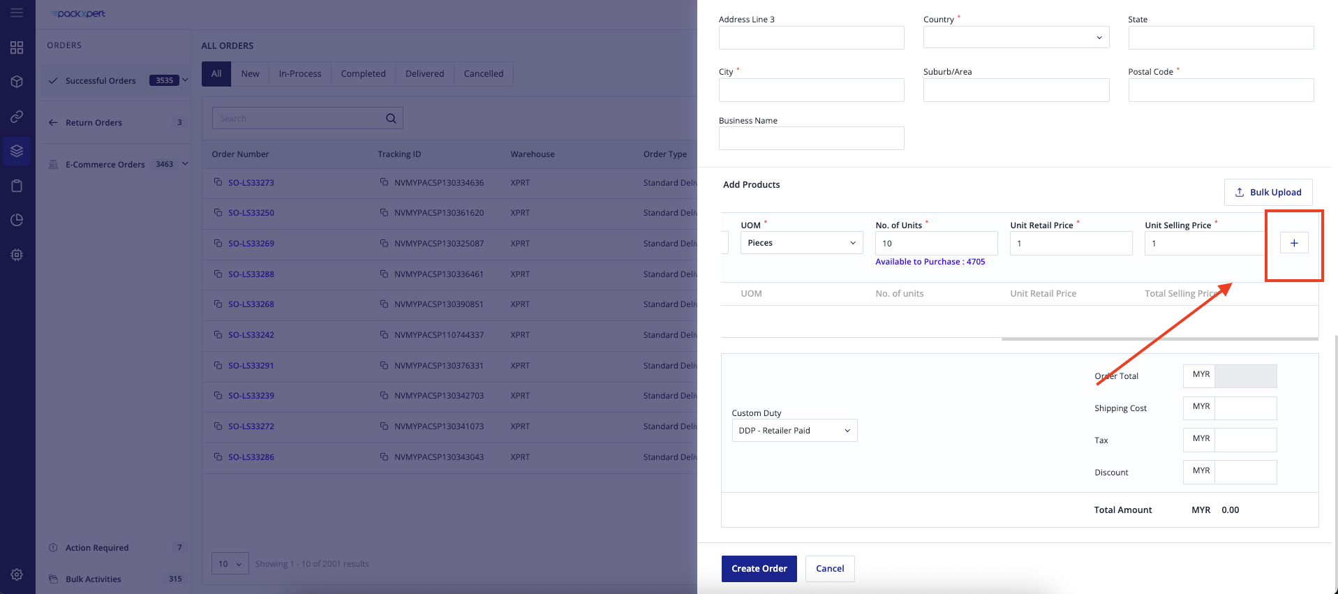 After selecting the SKU details, please click the “+” icon on the right-hand side.